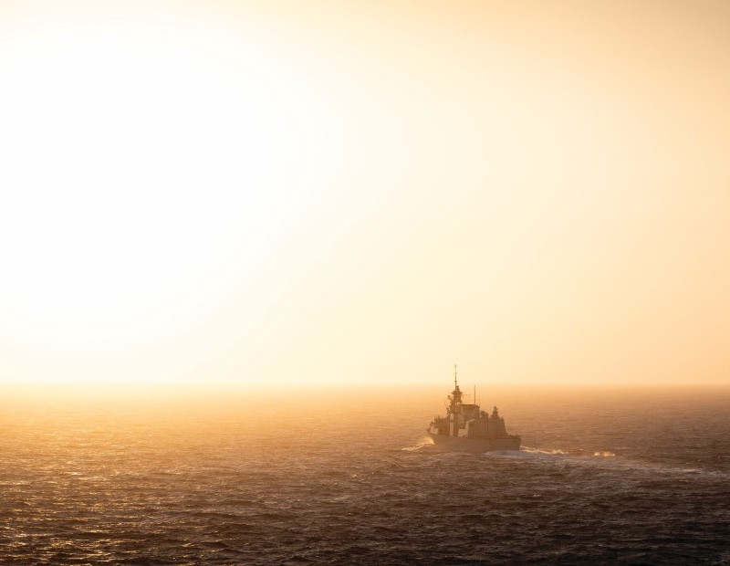 Flagship of Standing NATO Maritime Group Two (SNMG2), HMCS Charlottetown, sails the Mediterranean Sea conducting operational patrols during Operation REASSURANCE on July 11, 2024.