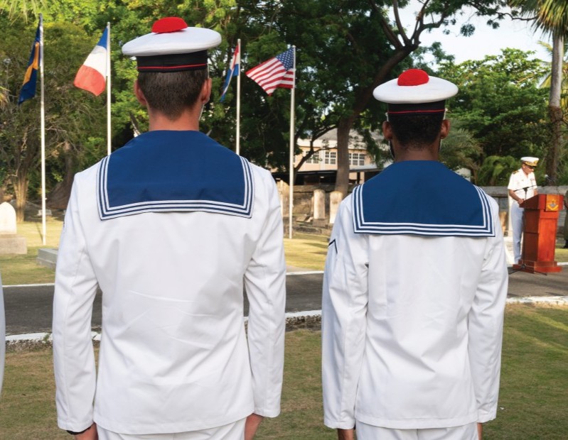 Participating nations for Exercise TRADEWINDS (TW24) including Canadian, American and Barbadian delegates, along with H.E. MS. Lilian Chatterjee, Ambassador of Canada and Małgorzata Wasilewska, Ambassador of the European union, gathered at The Barbados Military Cemetery at Needham’s Point, for a small ceremony facilitated by the French Naval command team, in honor of Victory in Europe Day (VE Day), a day celebrating the formal acceptance by the Allies of World War II of Germany’s unconditional surrender of its armed forces, on May 8, 2024.