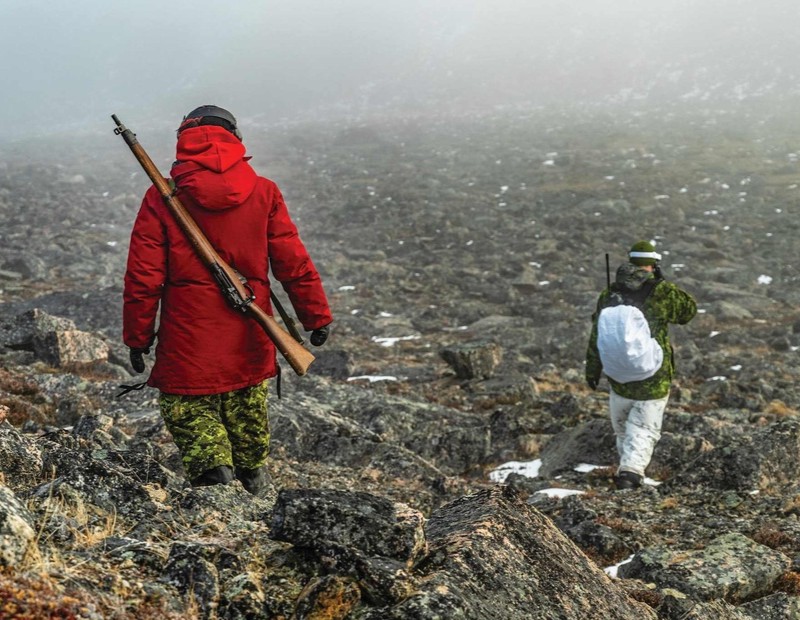 Les membres du groupe de travail terrestre NUNAKPUT se rendent à leur poste d’observation pendant l’opération NANOOK-NUNAKPUT près de Pond Inlet, au Nunavut, le 9 septembre 2025.