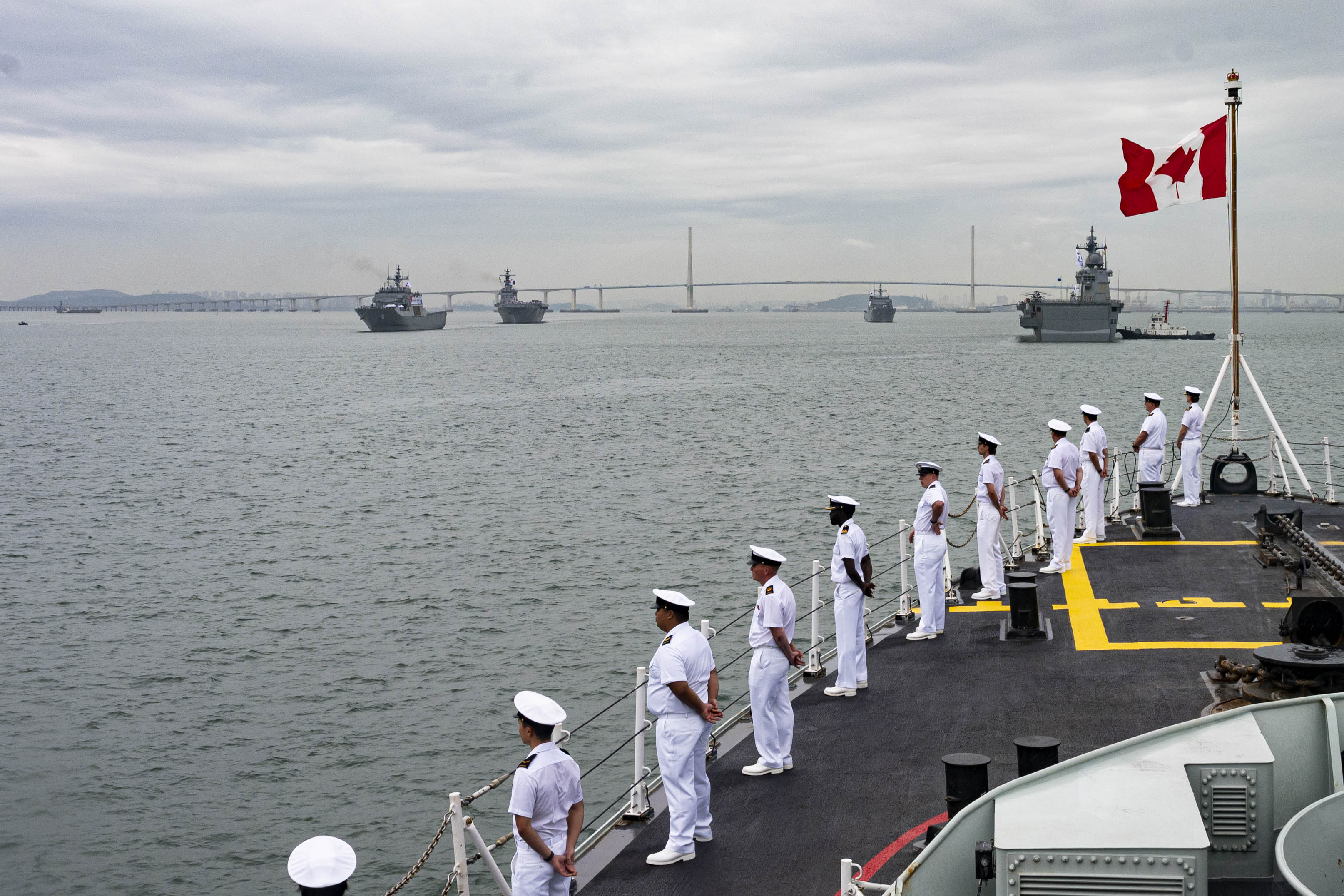 Majesty’s Canadian Ship (HMCS) Vancouver participates in a reenactment of the Incheon Landing Operation and a Fleet Review with Republic of Korea Navy Ships and United States Ship (USS) America on September 15, 2023 in Incheon, South Korea.