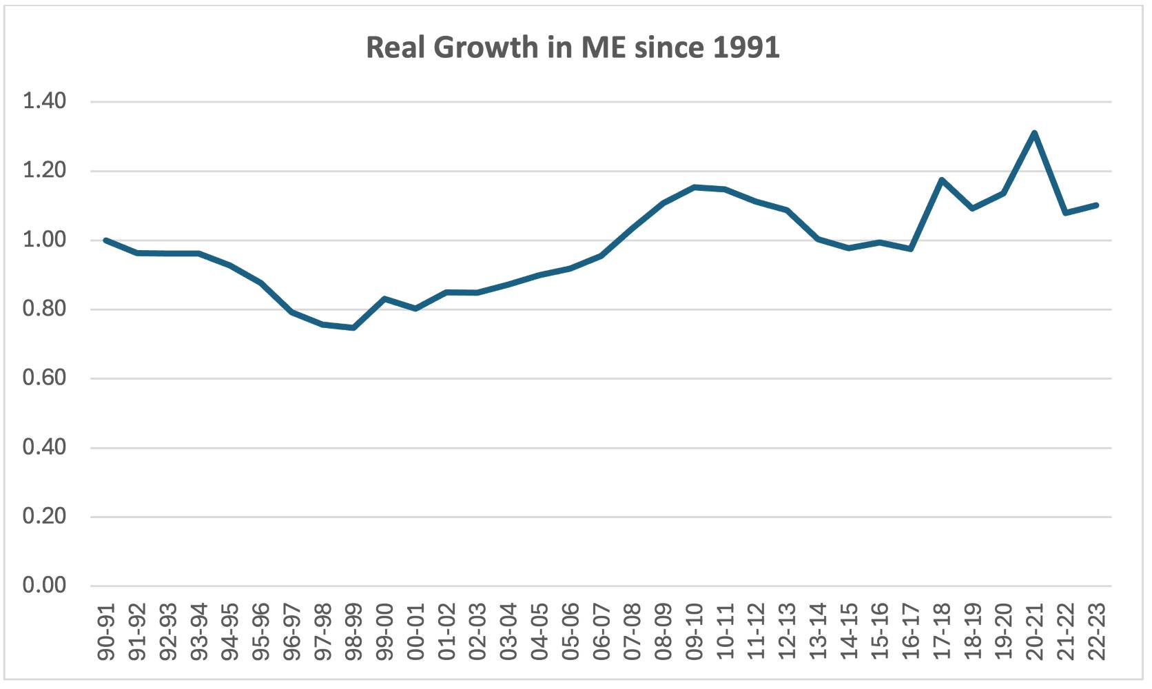 The analysis of data since the early 1990s, when the country enjoyed the peace dividend, against the background of a painful major fiscal reset with a new government elected in 1993 reveals a flat defence expenditure curve.