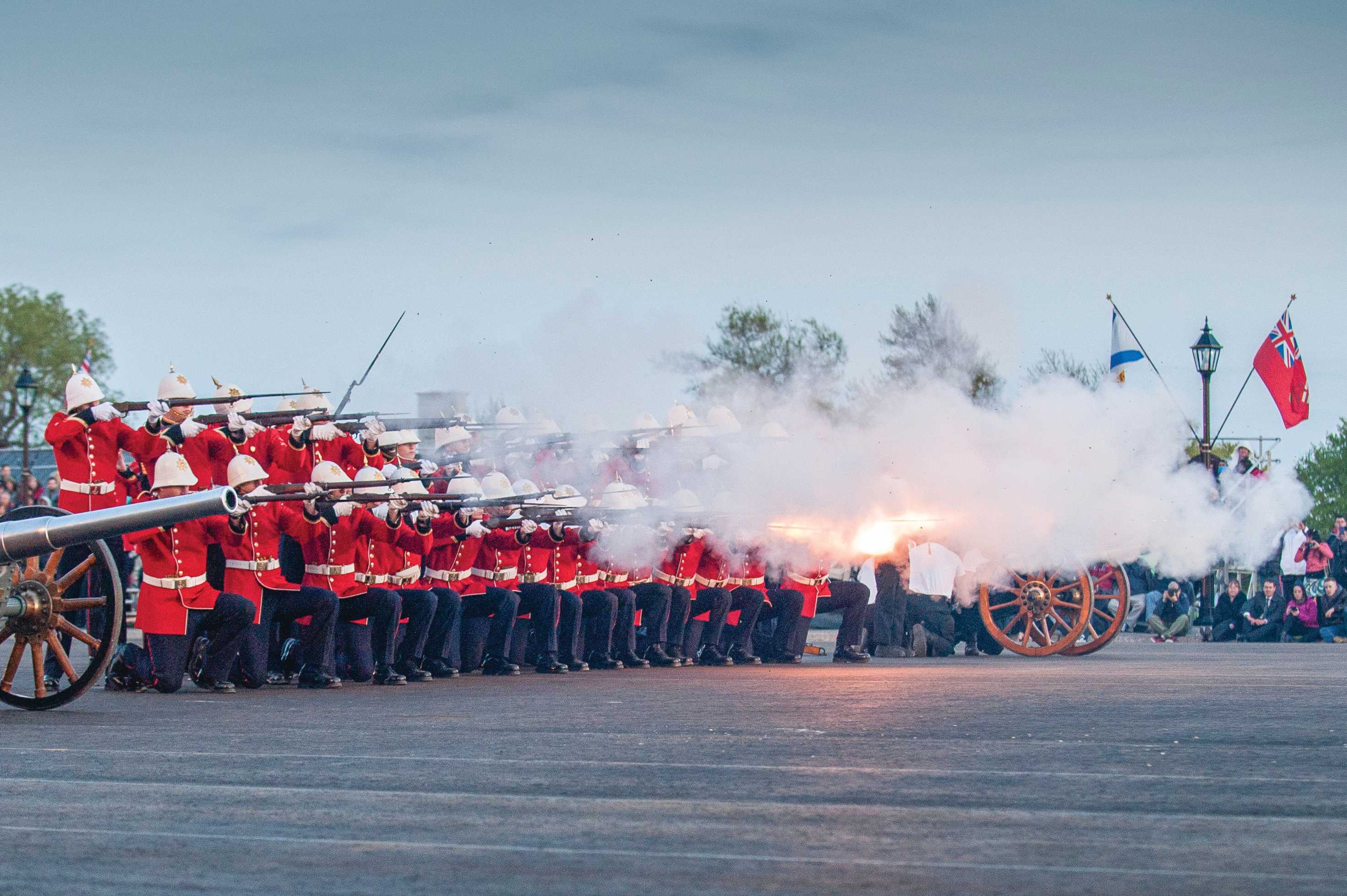 Cadets demonstrate firing skills during the Sunset Ceremony held at Royal Military College of Canada, Kingston ON, on May 14, 2015.