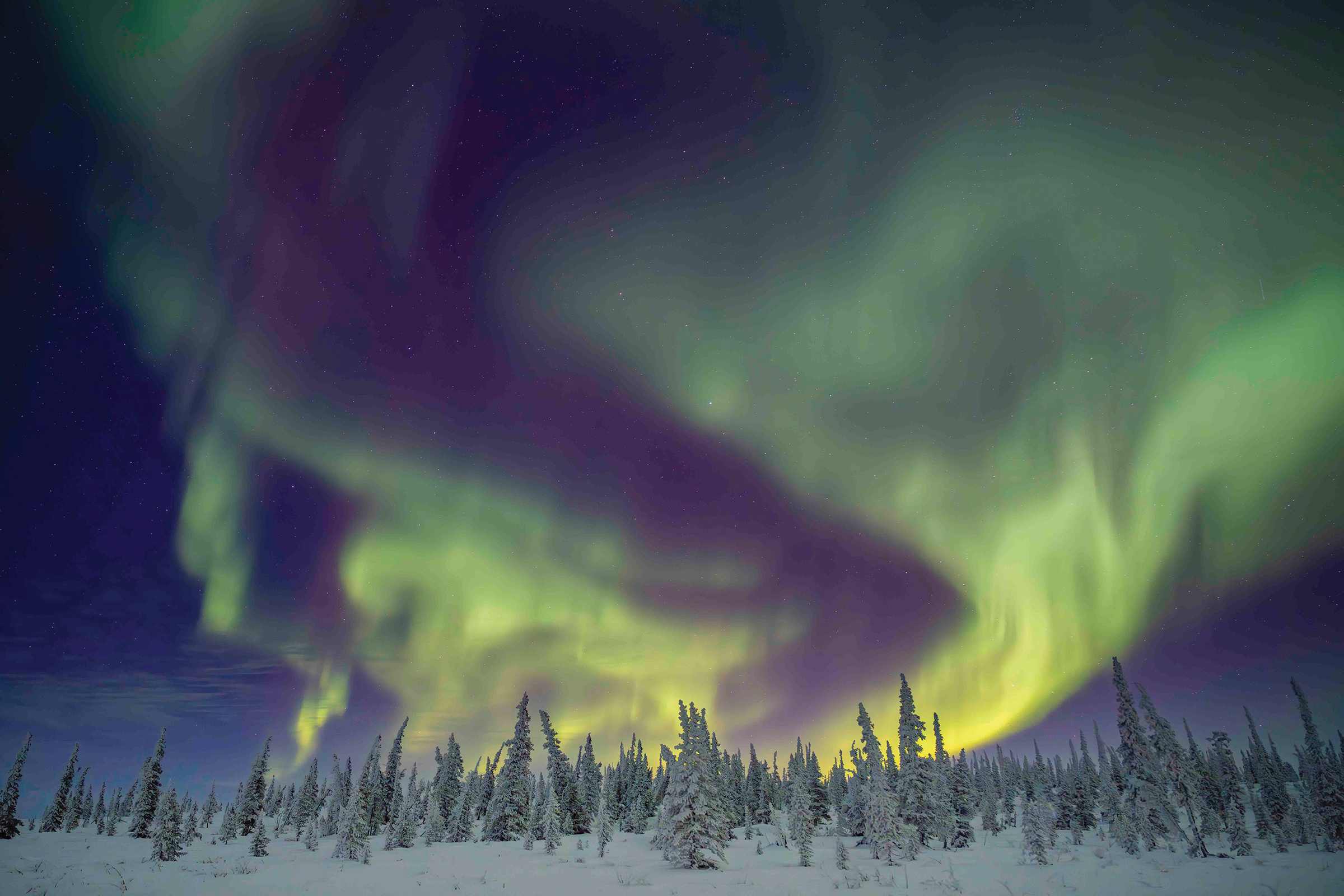 The northern lights over Inuvik, Northwest Territories during Operation NANOOK-NUNALIVUT on February 28, 2025.