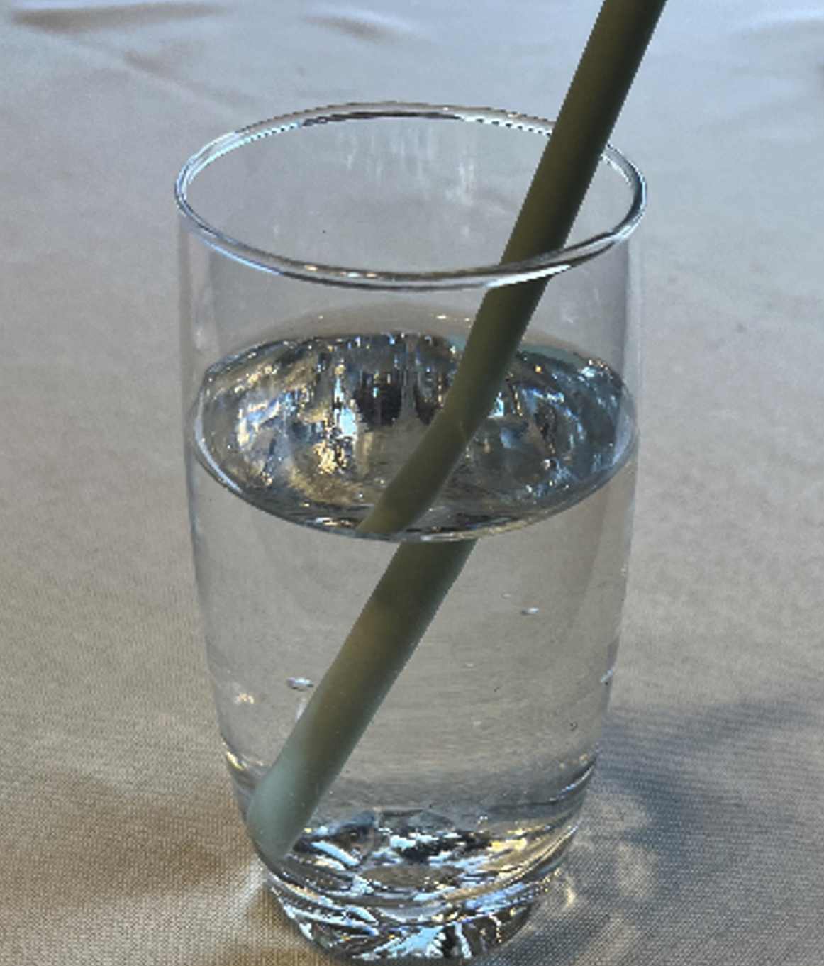 Figure 2: A straw in a glass of water. Refraction of light causes the straw to appear bent and disjoint in the water.