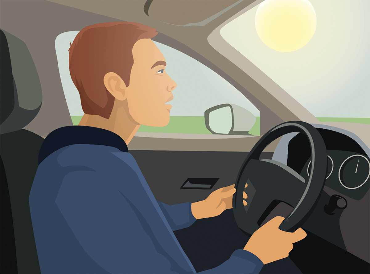 Figure 6: Direct sunlight interfering with vision of the road. Illustration provided by Sarah Tierney, DRDC Science Visual Documentation Team.