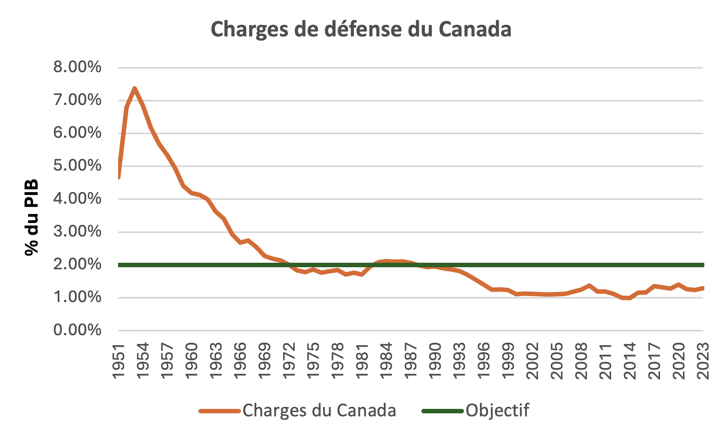 Figure 1 : Évolution des charges du Canada en matière de défense, 1951-2023