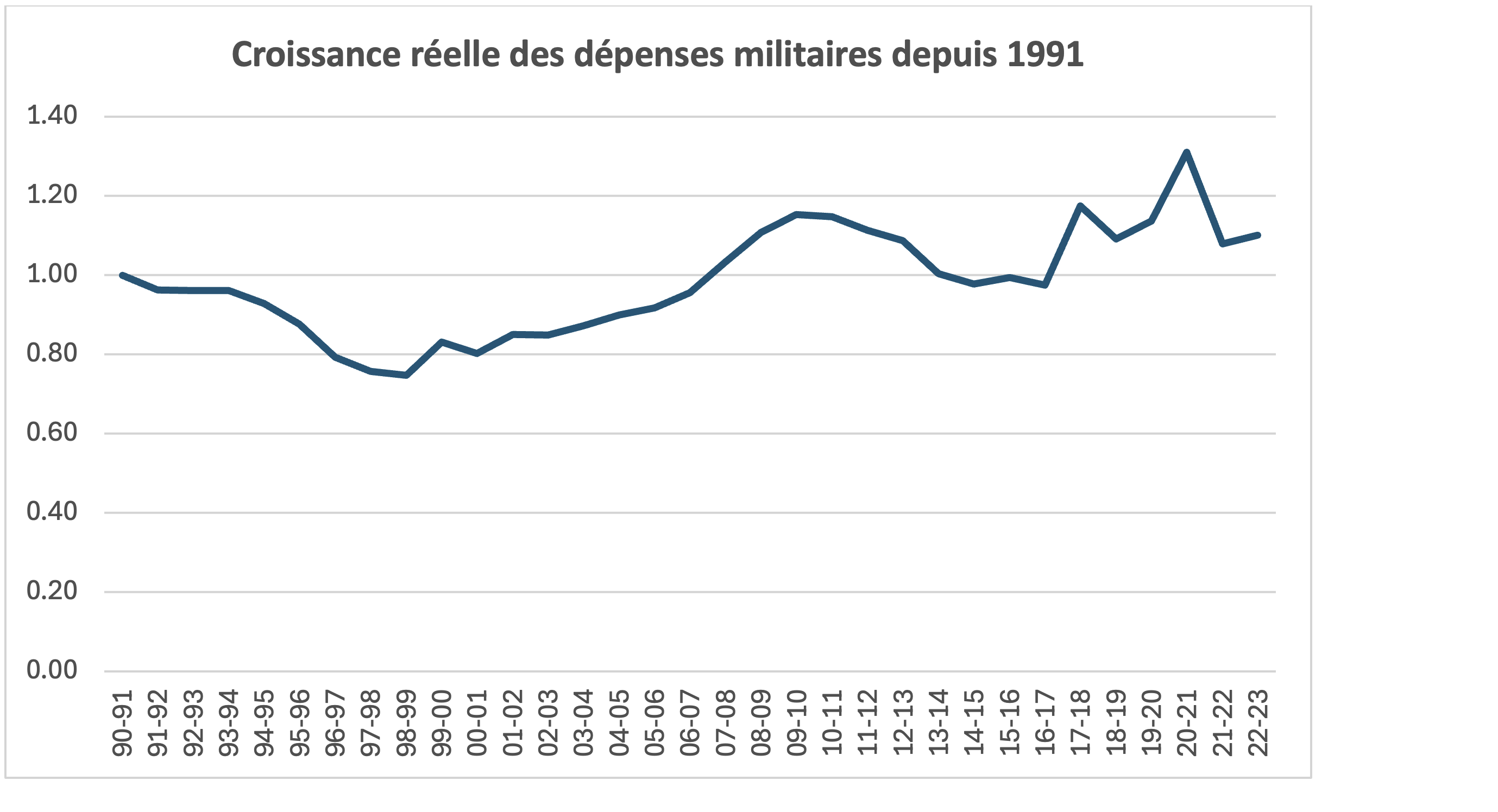 Figure 2 : Croissance réelle (rajustée en fonction de l’inflation) des dépenses militaires, 1991-2023